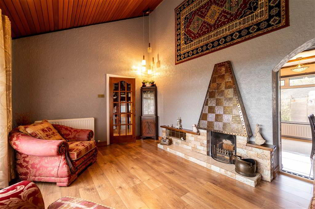 Access via a uPVC and double-Glazed Door with a double-Glazed side Panel. Complete with Solid Wooden Flooring and access to built-in Storage. - LIVING ROOM: