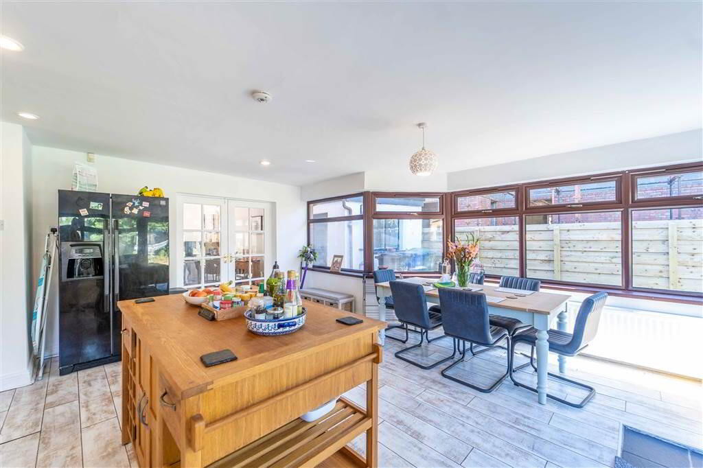 Spacious front aspect Reception Room with Wooden Floor and a Feature Cast Iron Fireplace. Double Doors leading through to: - KITCHEN / DINING: