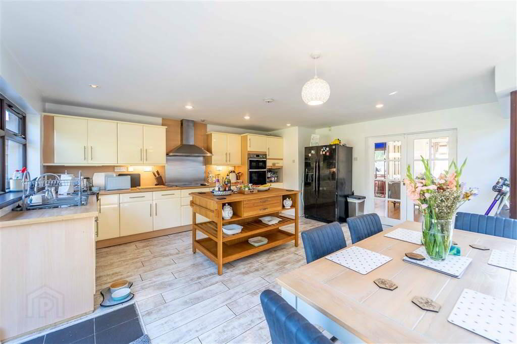 The Ground Floor of the property comprises a spacious Lounge, with a feature Cast Iron Fireplace, leading through double doors to a modern Kitchen with ample space for dining and panoramic windows overlooking the Rear Garden. Completing the Ground Floor is access to a Cloakroom / W.C.