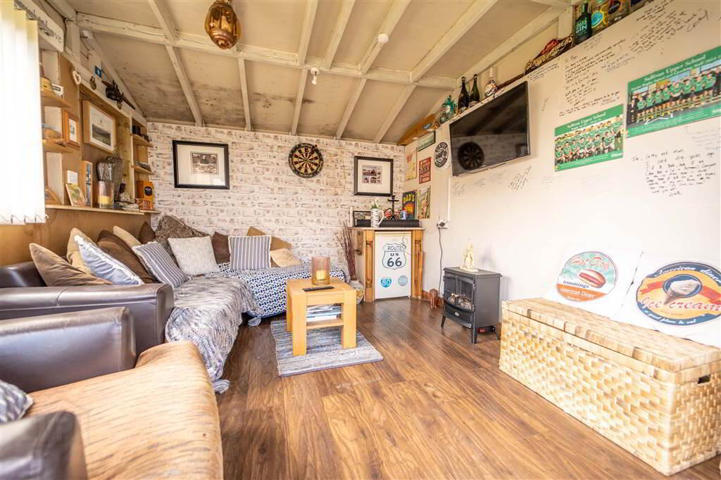 To the rear of the Property there is a fence enclosed garden offering multiple areas, with an aspect makes the most of the sun, to relax or entertain. The garden is primarily laid in lawn. Additionally, there is a Detached Garage which has been plumbed for Utilities, a Timber Decking Area (currently utilised as a Hot Tub Area) and a Timber Summer House which has been fitted with power.