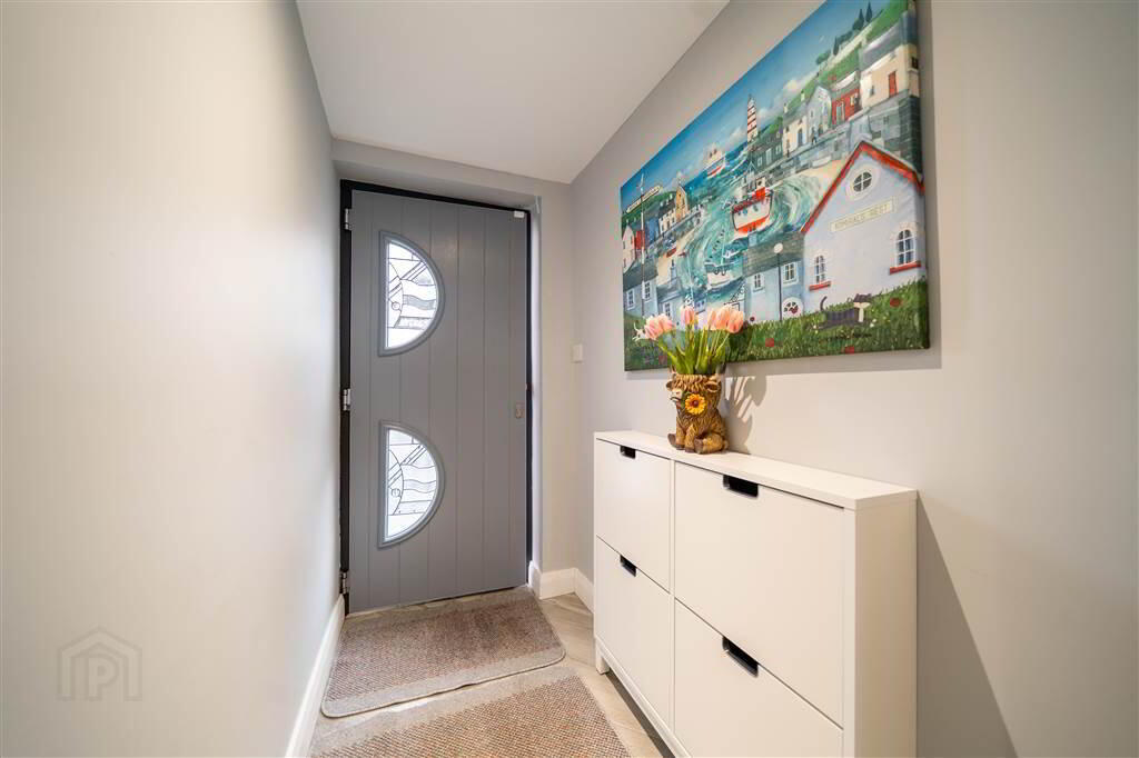 Access via a Composite and double-Glazed Door, complete with Herringbone Tiled Flooring and recessed Spotlights. - REAR HALLWAY: