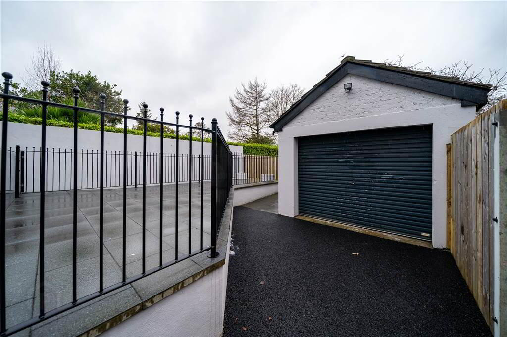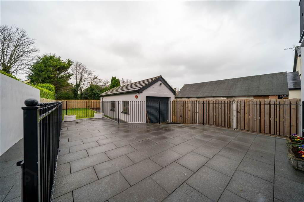 To the rear of the Property there is a Fence and Wall enclosed Garden in Lawn, Tarmac, a raised Patio area and access to the detached Garage.