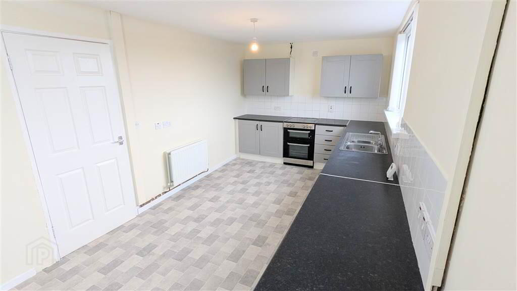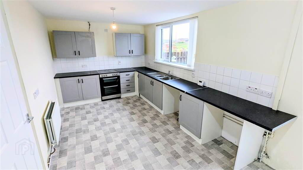 Fitted Kitchen with a range of high and low level units with complimentary Laminate Worktops. The Kitchen area provides ample space for dining and access to the Rear Garden.
