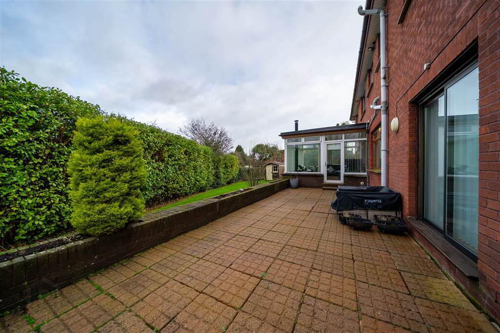 Externally, accessed via a long driveway setting the Property back from the Road, this Property enjoys a spacious lawn garden to the side of the Property that extends to the Rear. Furthermore, to the Rear of the Property there is an elevated Patio Area joining to the Property accessible from the Lounge, Sun Room and Utility Room. To the front of the Property, there is a large parking area to easily accommodate a number of vehicles.