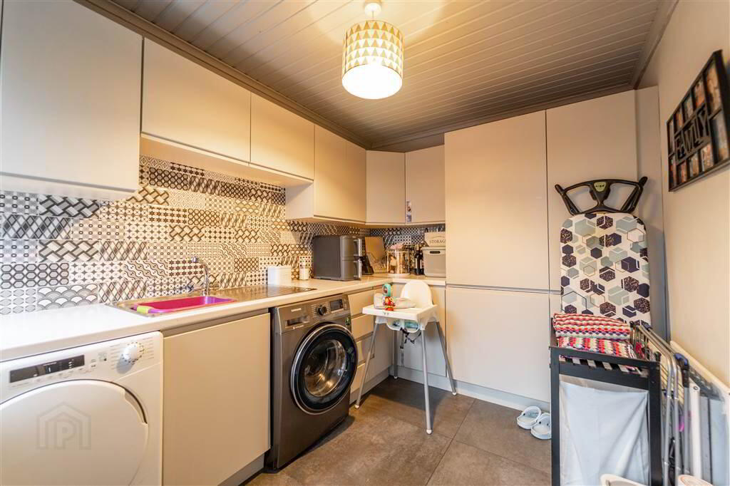 Excellent range of high and low level units, with complimentary Worktops, a Stainless-Steel Sink Unit and plumbed for utilities. Separate access to the Rear Patio Area. Tiled floor continued from the Kitchen and part tiled walls.