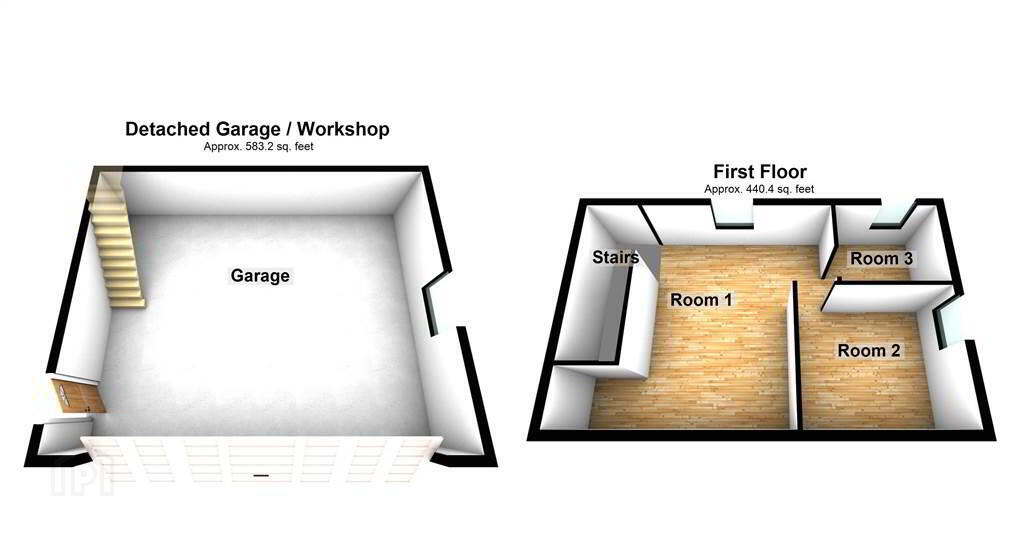 In addition to the Principal Property, there is a spacious Detached Garage / Workshop with a Ground Floor Area of approx. 583 sqft accessed via both a double with Electric Garage Door to the front and a pedestrian side entrance. Furthermore, there is access via a fixed staircase to the first floor which has been floored and divided into rooms with a total area of approximately 440 sqft. Subject to relevant planning / and approvals this space would be ideal for use as further accommodation.