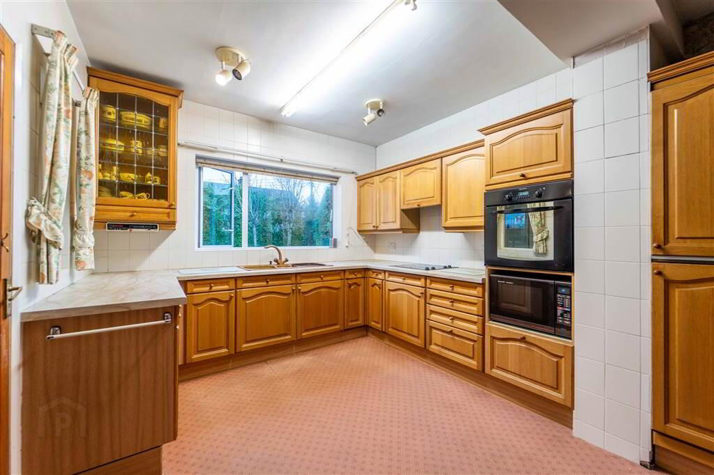 Beautifully presented Kitchen with a range of high- and low-level units, complimentary Worktops, Integrated Oven, Fridge and Freezer, a 1 & ½ Bowl Sink and Drainer Unit, a Four Ring Ceramic Hob and stunning Views over the rear Garden. Complete with part Tiled Walls and ample space for Dining.
