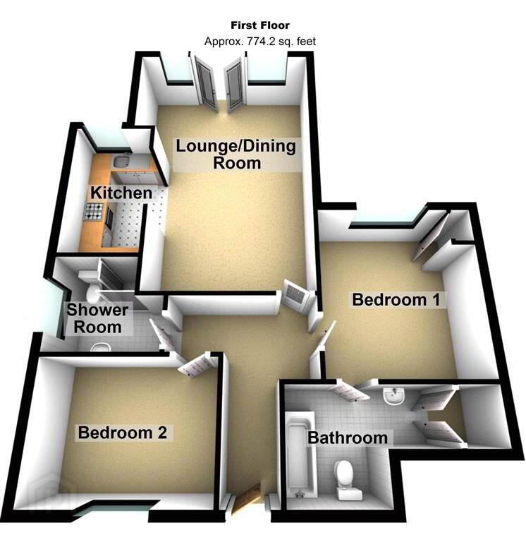 Accommodation comprises of two double Bedrooms (the Principal Bedroom with access to an Ensuite Bathroom), a spacious Lounge / Dining Room with access to a Balcony, a modern fitted Kitchen open plan off the Lounge and a Shower Room.