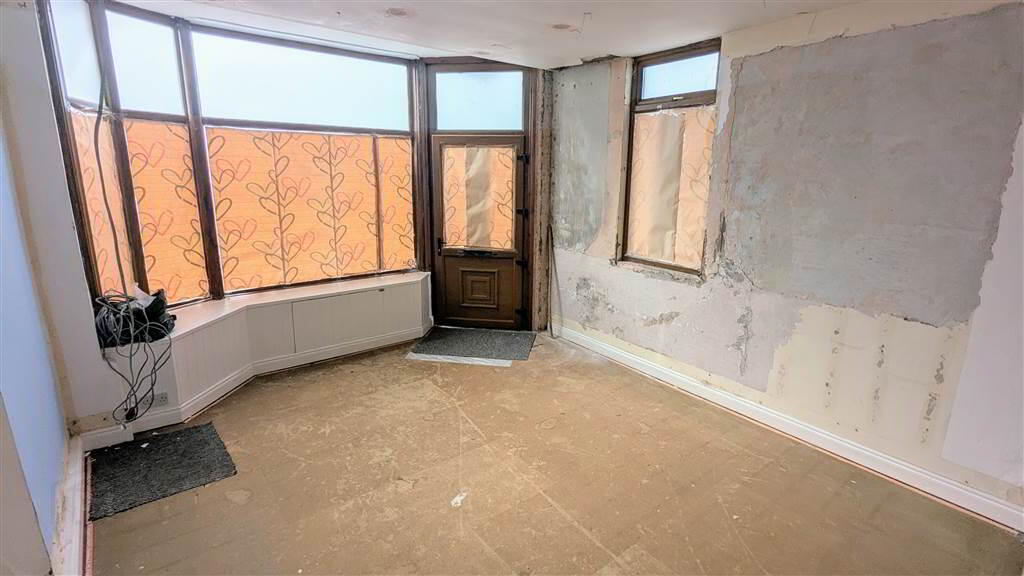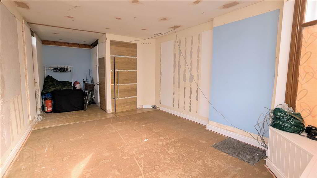 Front aspect Reception Room enjoying views towards Bangor Marina enhanced with a ‘Julliet Balcony’. Complete with Laminate Wooden Flooring and retaining original Ceiling Rose. Open doorway to: