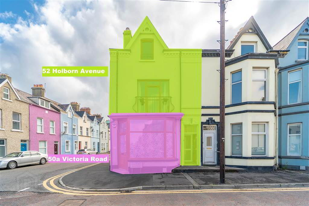 Tavelling along Holborn Avenue from Bangor's High Street, 50a Victoria Road is on the right on the corner of Holborn Avenue & Victoria Road.
