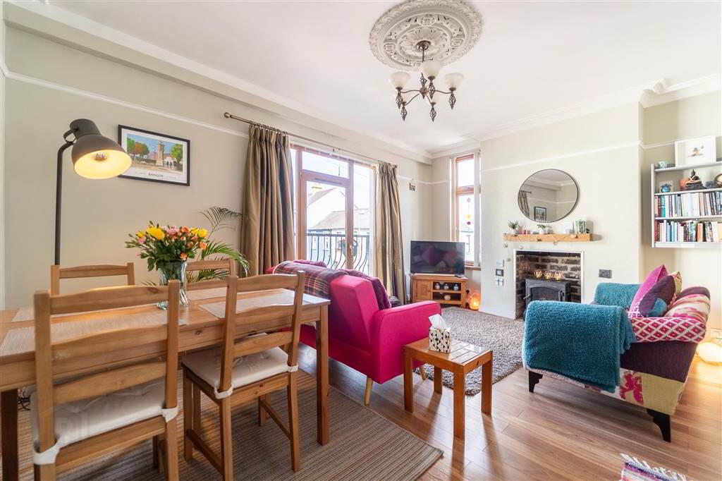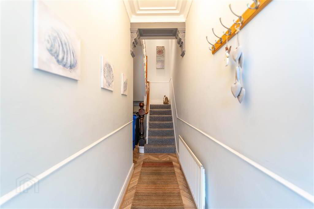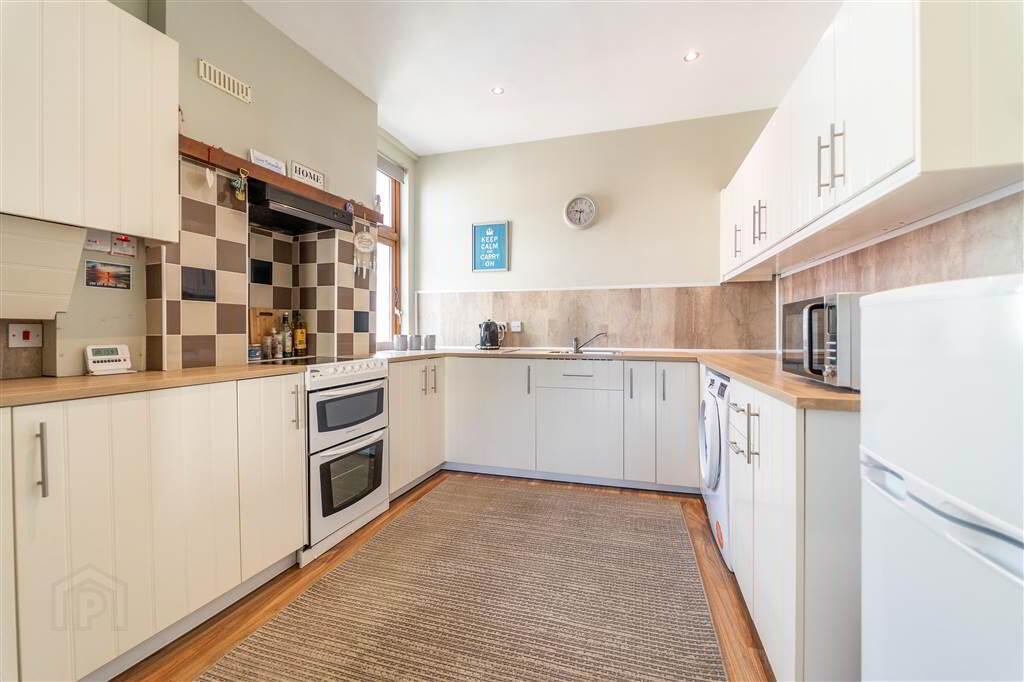5.11m x 3.66m (16' 9" x 12' 0") Front aspect Reception Room enjoying views towards Bangor Marina enhanced with a ‘Julliet Balcony’. Complete with Laminate Wooden Flooring and retaining original Ceiling Rose. Open doorway to: