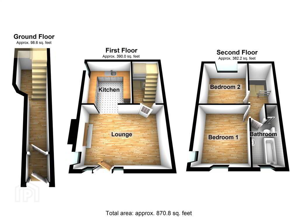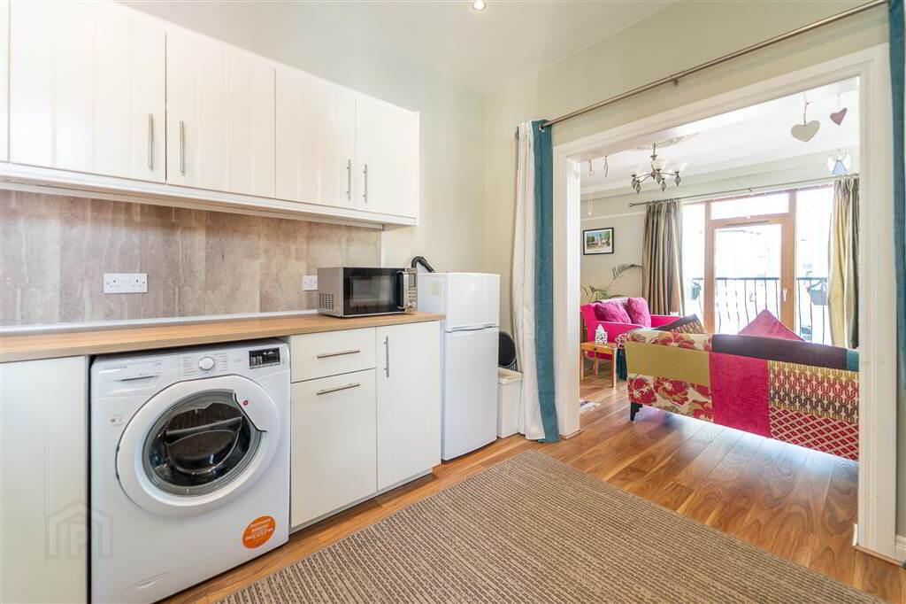 3.28m x 3.15m (10' 9" x 10' 4") Fitted Kitchen with an excellent range of high and low level units with complimentary Worktops. Complete with Laminate Wooden Flooring.