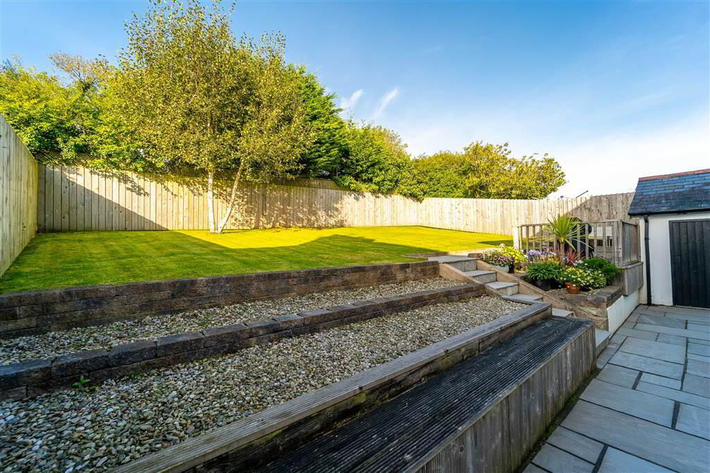 To the rear of the Property there is a stunning Fence enclosed West facing Garden in a mixture of Lawn, a raised Decking Area, a Patio Area and loose Stone Flowerbeds.
