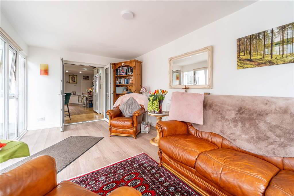 Spacious Reception Room, accessed via double doors from the Kitchen, with double glazing the length of the wall overlooking the Rear Garden. Complete with Laminate Wooden Flooring and double doors to the Garden.