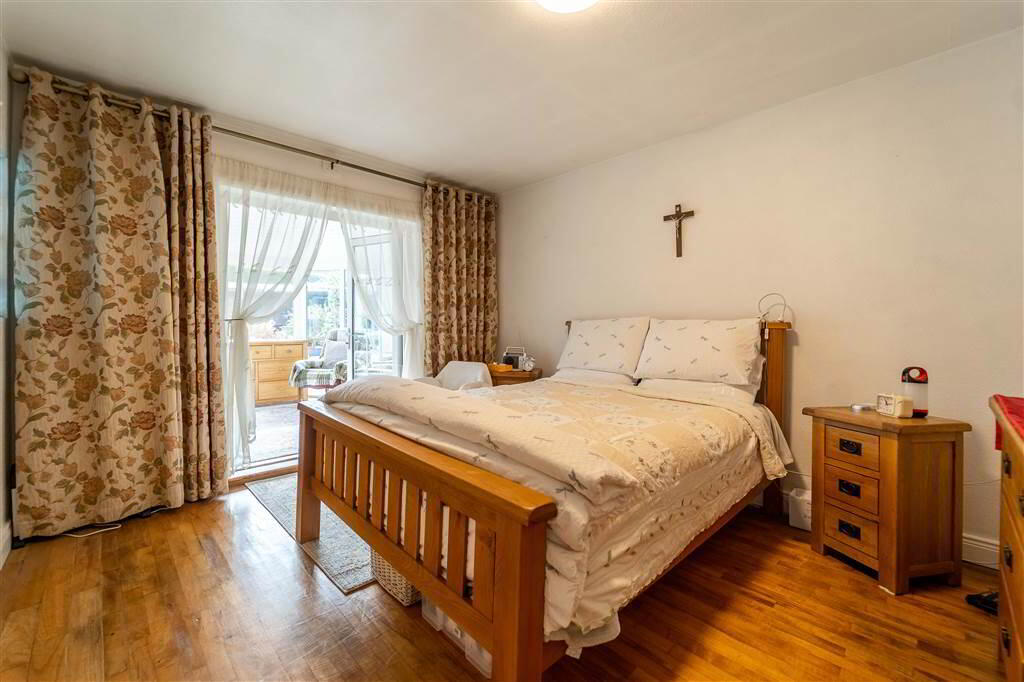 Rear aspect double Bedroom with Wooden Flooring, access to an Ensuite Shower Room and double doors through to the Conservatory.