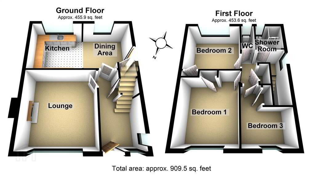 The First Floor of the Property comprises of three well-proportioned Bedrooms, each with built-in storage, a Shower Room and a separate W.C.