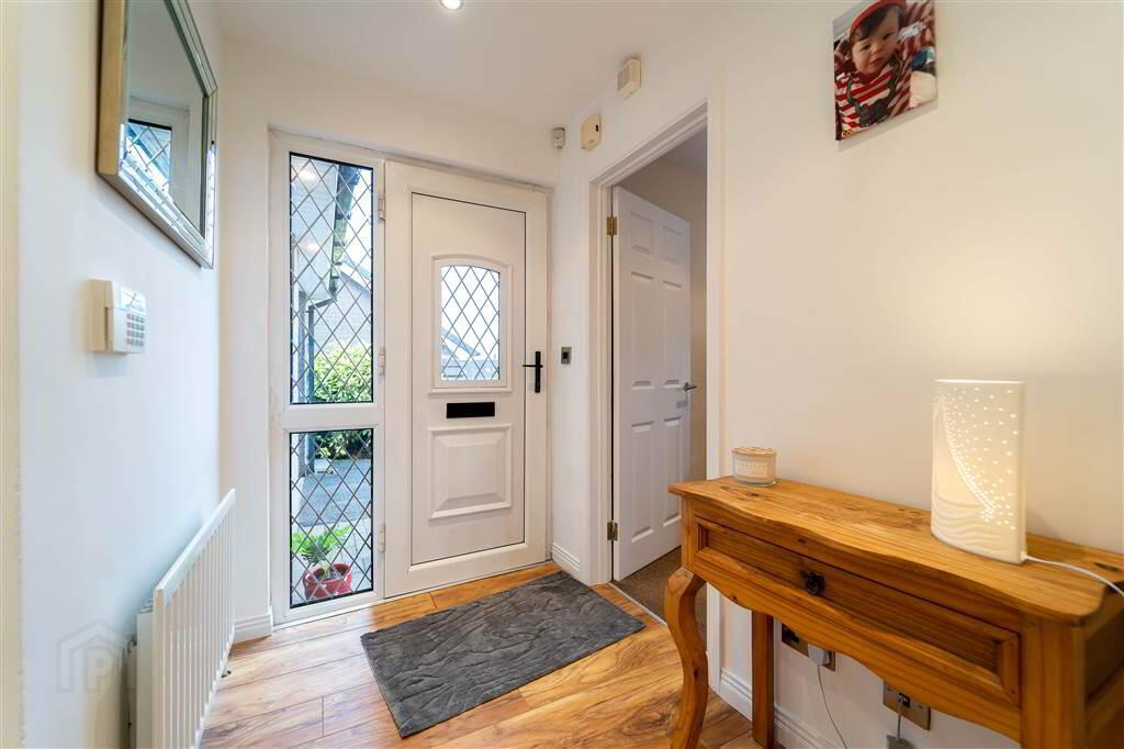 PVC front door with complimentary double glazed side panel into the Entrance Hall complete with Laminate Wooden Flooring.