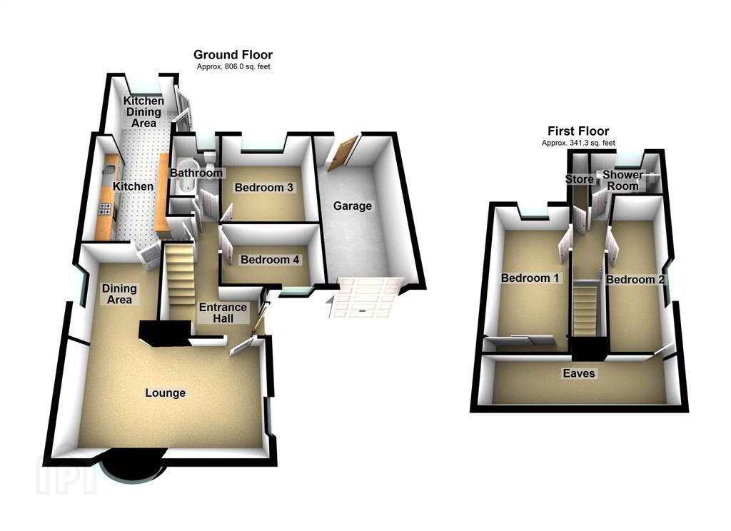 The First Floor of the Property offers two further Bedrooms, a modern Shower Room and access to a spacious Eaves Storage Area.