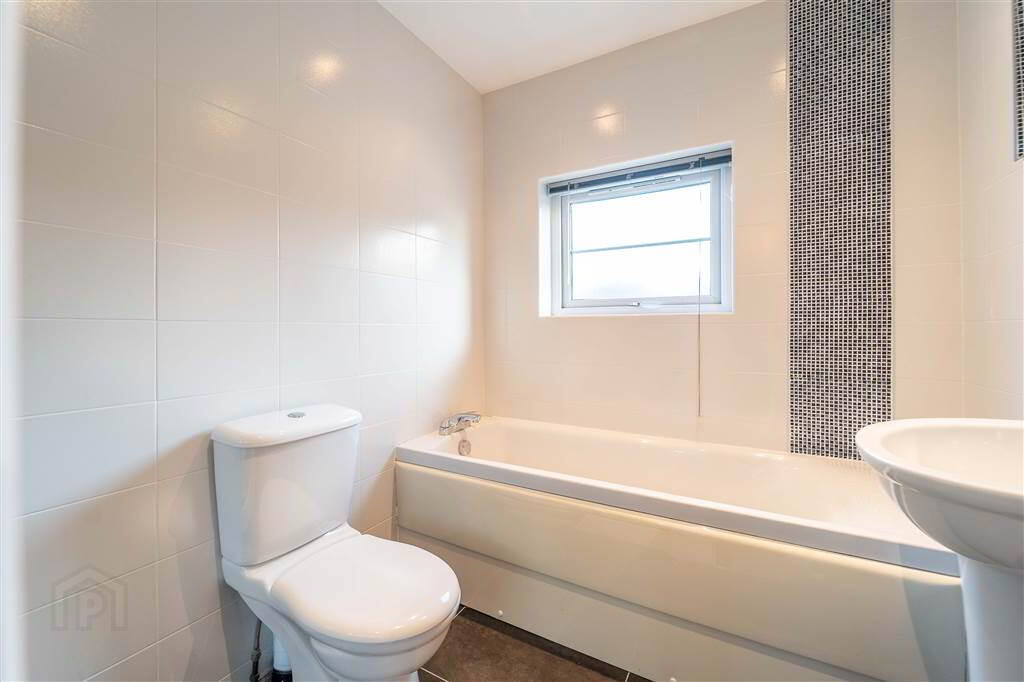 Four-piece Suite comprising a Panel Bath, a Mains Shower Cubicle, a Low Flush W.C. and a Wash Hand Basin. Complete with Tiled Walls, Tiled Flooring, recessed Spotlights and an Extractor Fan.