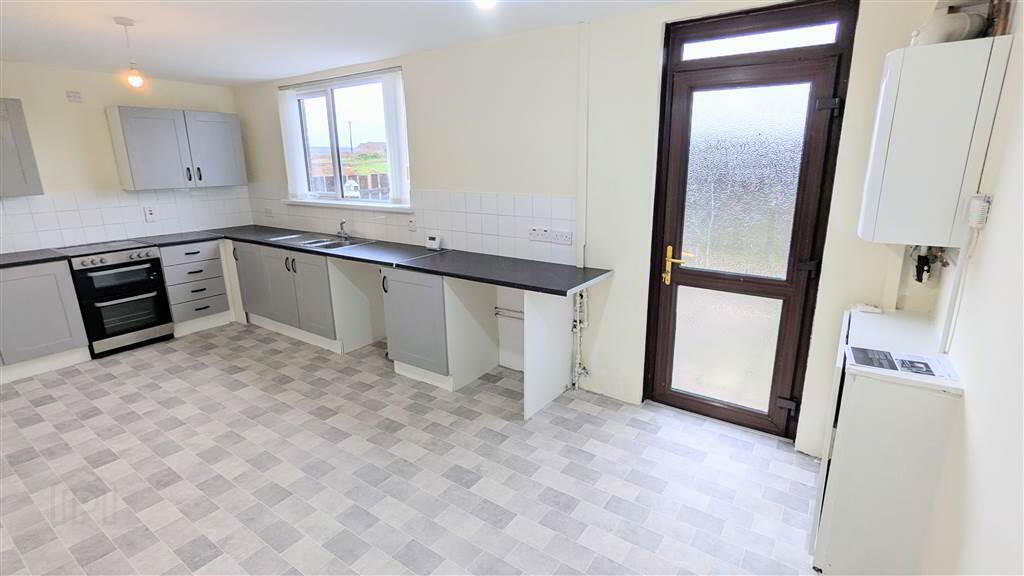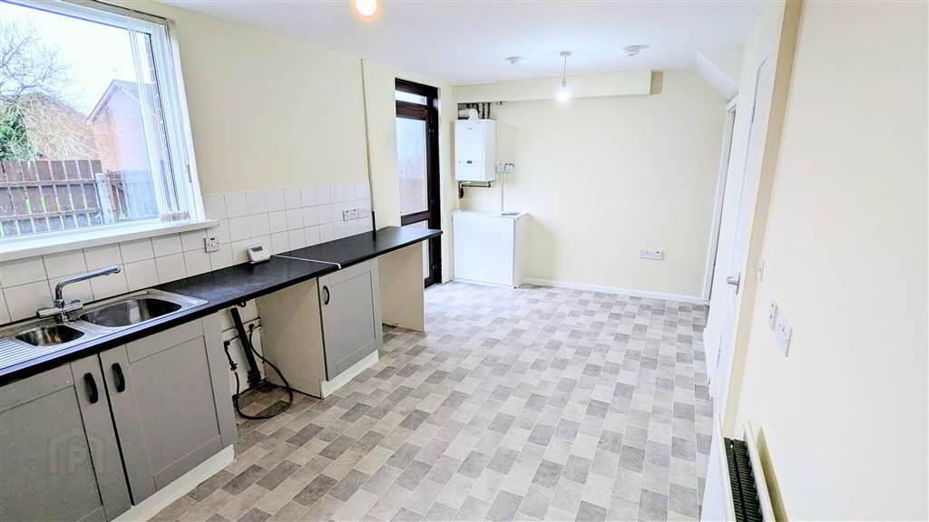 Fitted Kitchen with a range of high and low level units with complimentary Laminate Worktops. The Kitchen area provides ample space for dining and access to the Rear Garden.