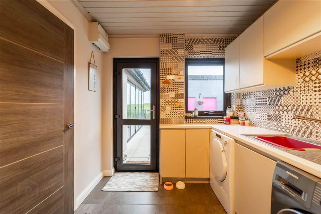 Excellent range of high and low level units, with complimentary Worktops, a Stainless-Steel Sink Unit and plumbed for utilities. Separate access to the Rear Patio Area. Tiled floor continued from the Kitchen and part tiled walls.