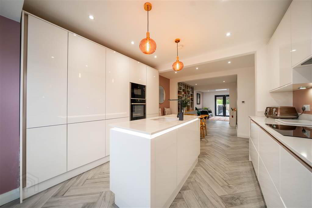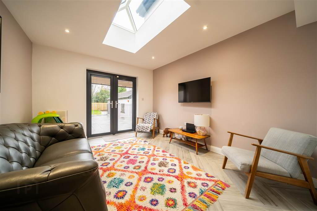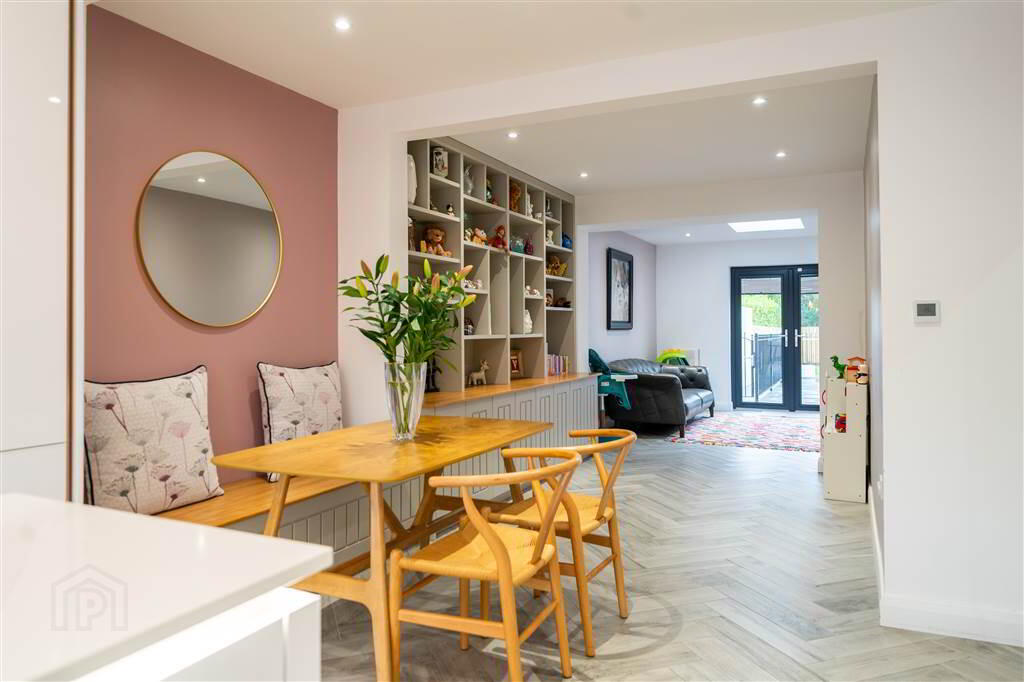 Rear aspect Reception Room with Herringbone Tiled Flooring, fitted Shelving and Storage, recessed Spotlights, a feature Rooflight and uPVC double Glazed Door provide access to the rear Garden.