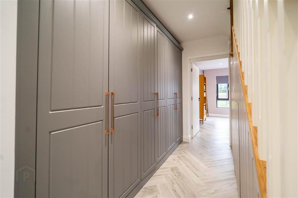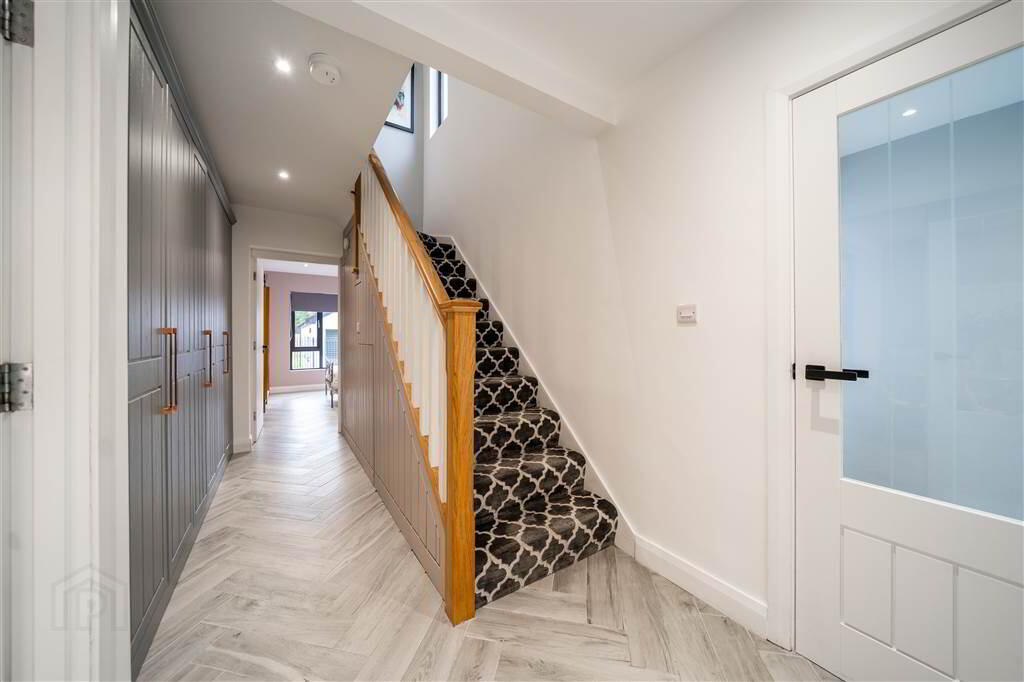 Complete with Herringbone Tiled Flooring, recesses Spotlights, built-in Storage and access to under Stair Storage which is Plumbed for a Washing Machine.