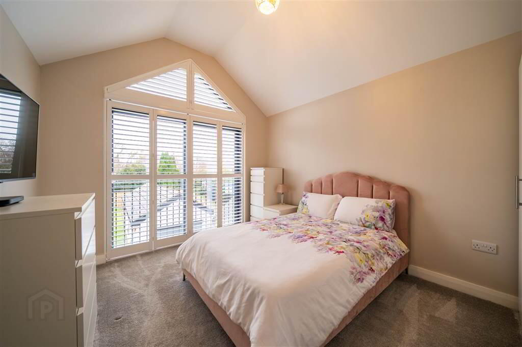 Rear aspect double Bedroom with uPVC and double-Glazed Sliding Doors providing access to the Juliet Balcony and a feature Vaulted Ceiling.