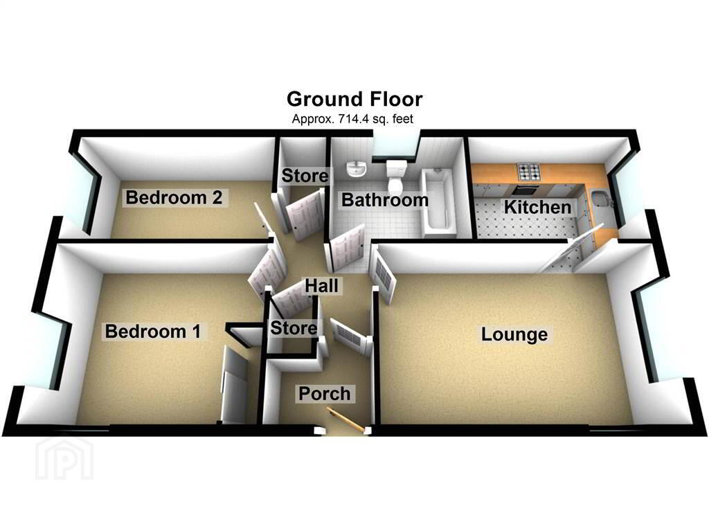 Accommodation comprises of two double Bedrooms, a spacious Lounge, a modern fitted Kitchen and a modern Bathroom Suite. Furthermore, there is access to two separate storage cupboards.