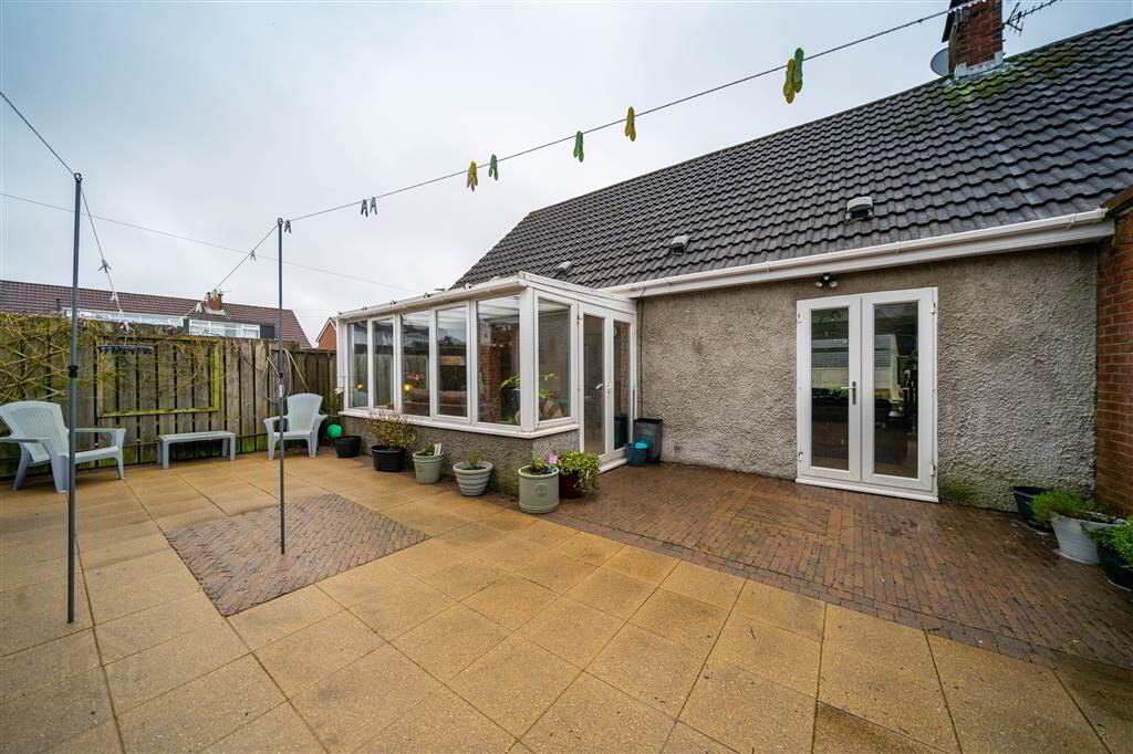 Externally, occupying a generous sized corner site, this property enjoys hedge lined gardens to the front (lawn) and side (loose stone) with a fence enclosed paved garden and a detached Garage to the Rear. A driveway also provides off-road parking and Garage access.