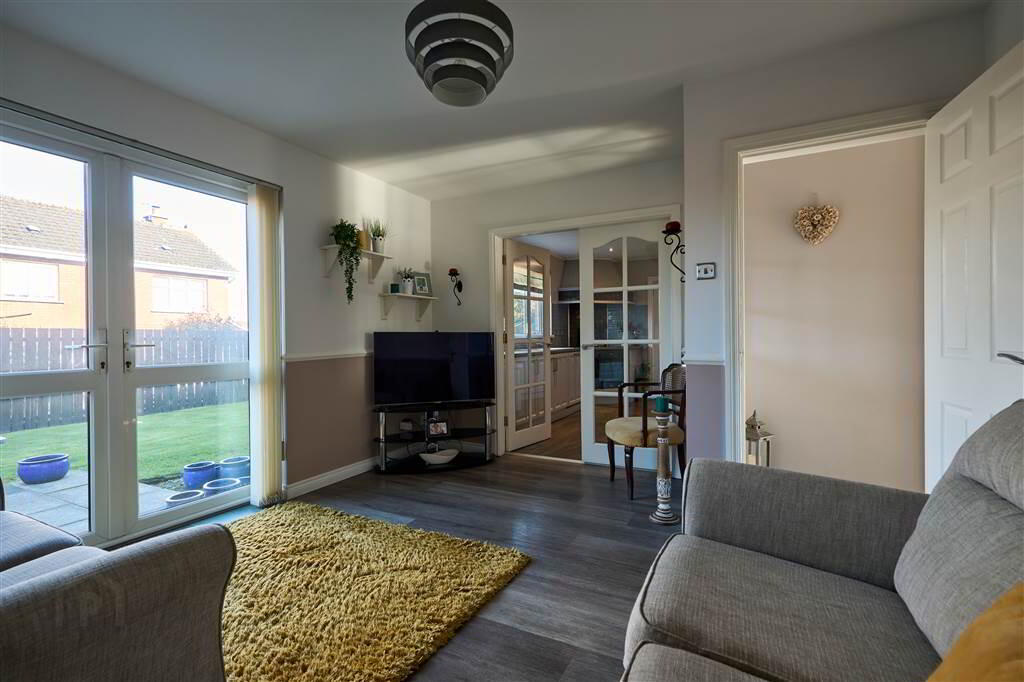 Rear aspect Reception Room, with Laminate Wooden Floor, accessed from the Entrance Hall and linking through to the Kitchen making it ideal for use as a Dining Room. Double Doors lead to the Rear Garden.