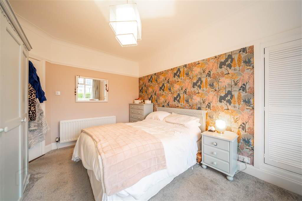 Front aspect double Bedroom, leading into a partial Box Bay Window, with built-in storage and access to an Ensuite Shower Room.