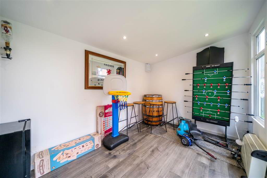 Externally, the home benefits from off-road parking and a lawn garden to the front. To the Rear, a fully fence-enclosed garden provides a private outdoor retreat, complete with a versatile garden room—ideal for a home office, gym, or relaxation space.
