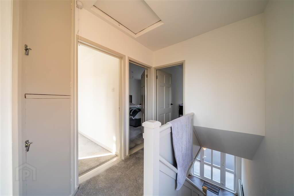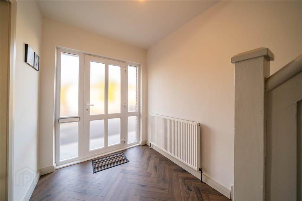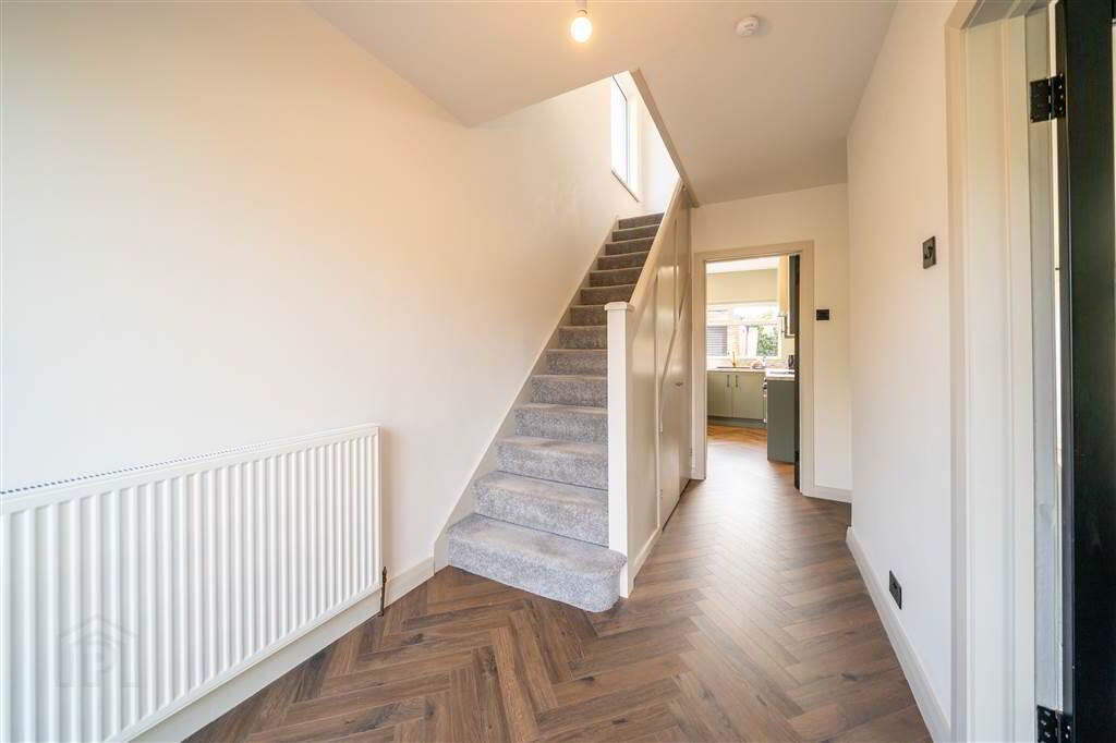 PVC Entrance Door with Double Glazing and double glazed side panels allowing light to flow into the Entrance Hall creating a bright environment. Complete with Herringbone Laminate Wooden Floor. Access to understairs storage.