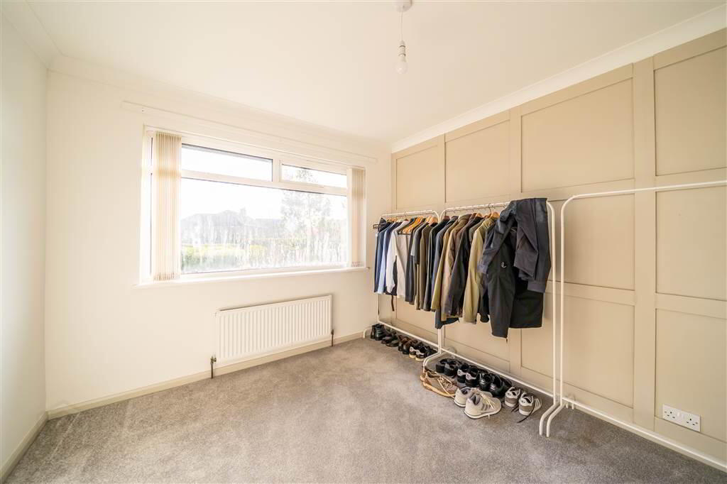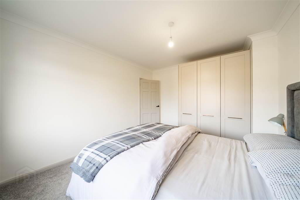 Rear aspect double Bedroom with a feature wood panel wall and partial sea views over Belfast Lough to the Rear.