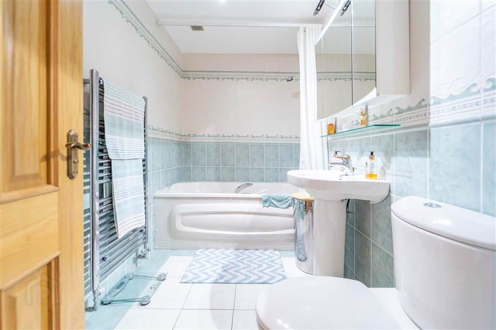 Completing the accommodation is a fully tiled Bathroom with a white three-piece suite comprising a Panel Bath with Shower Attachment, a Push Button W.C. and a Pedestal Wash Hand Basin.