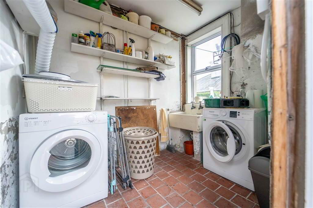 Accessed via the rear of the Property. Complete with Tiled Flooring, Plumbed for a Washing Machine and a feature Belfast Sink.