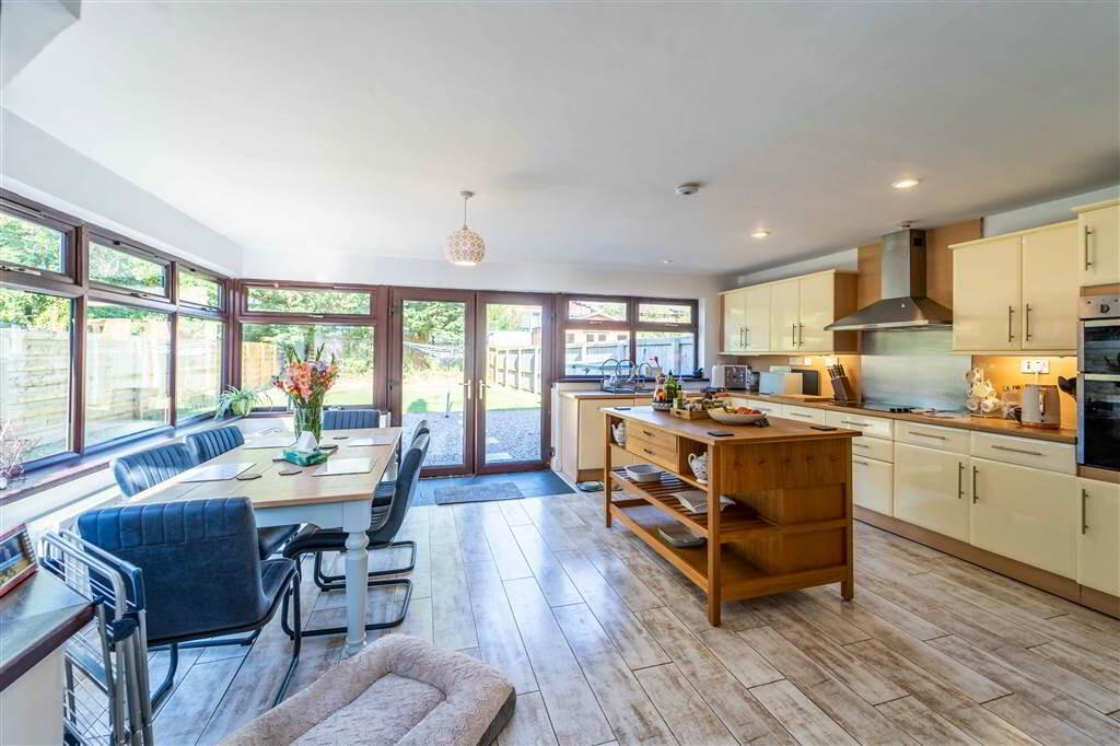 The Ground Floor of the property comprises a spacious Lounge, with a feature Cast Iron Fireplace, leading through double doors to a modern Kitchen with ample space for dining and panoramic windows overlooking the Rear Garden. Completing the Ground Floor is access to a Cloakroom / W.C.