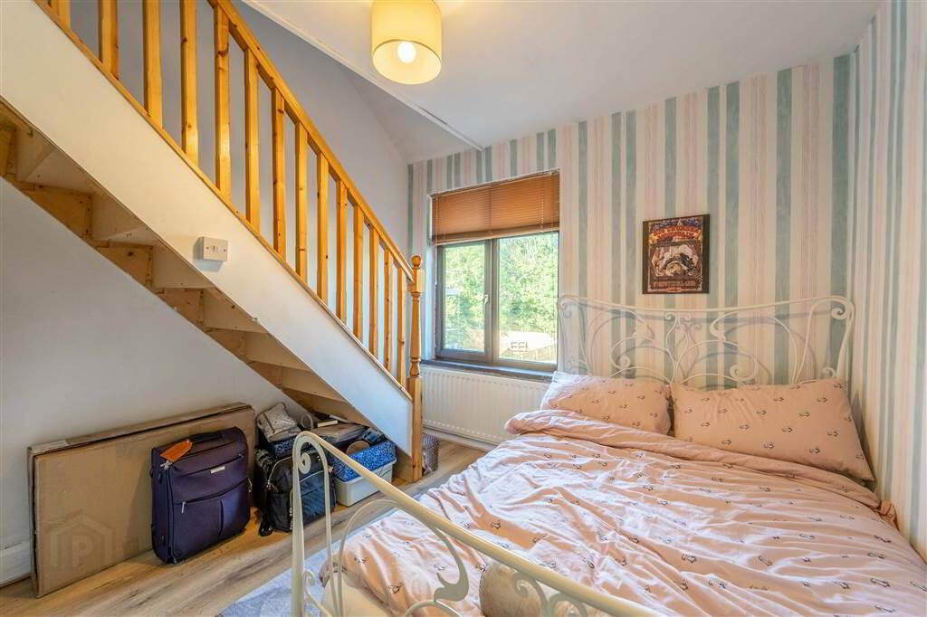 Rear aspect double Bedroom complete with Laminate Wooden Flooring. Staircase leading to Floored Roof Space. - BEDROOM (3):