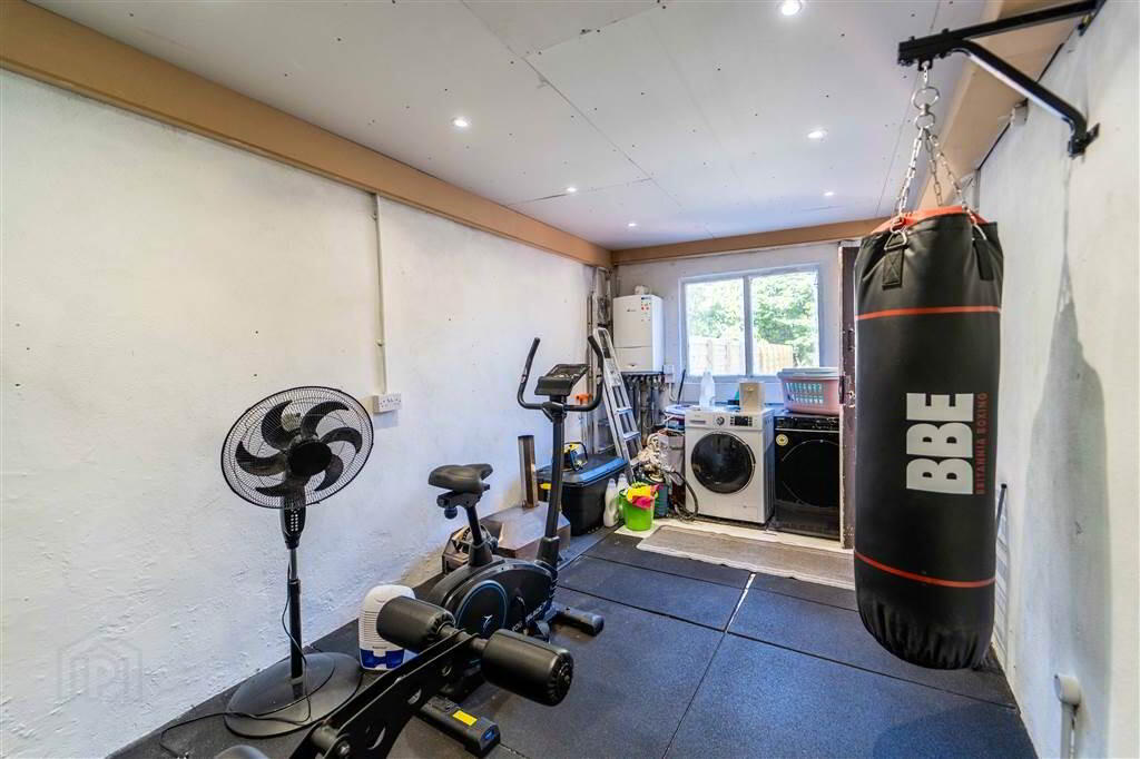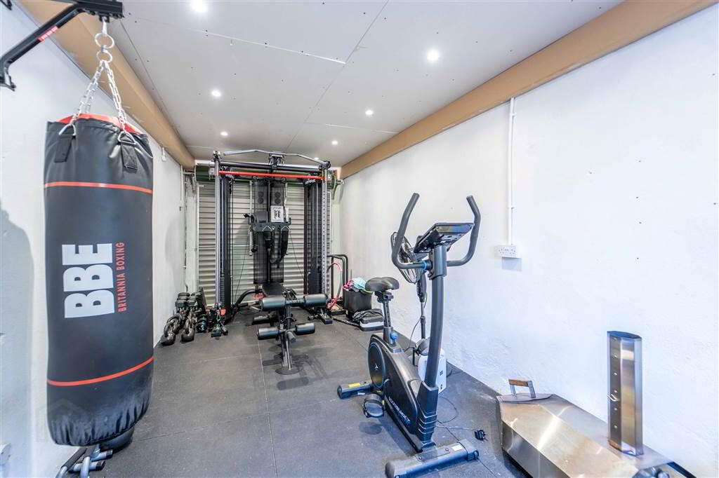 Accessed via a roller shutter door to the front and a separate side access from the Rear Garden. Plumbed for Utilities and fitted with spotlights and power points.