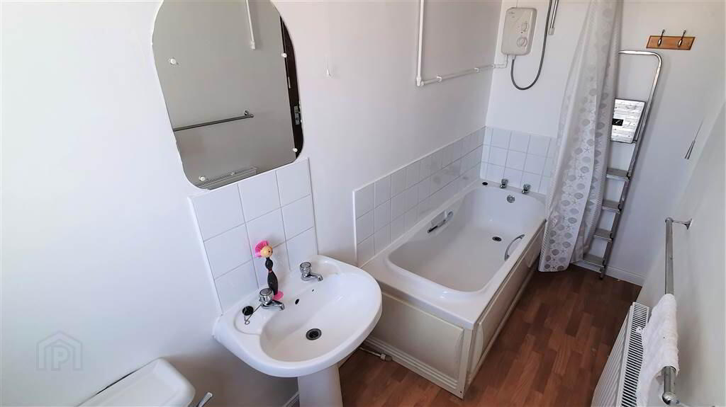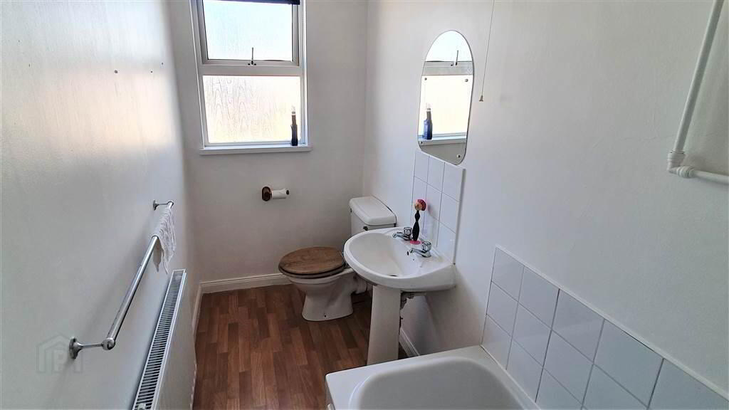 Fitted Bathroom with a white three-piece suite comprising a Panel Bath, a Pedestal Wash Hand Basin, and a W.C.