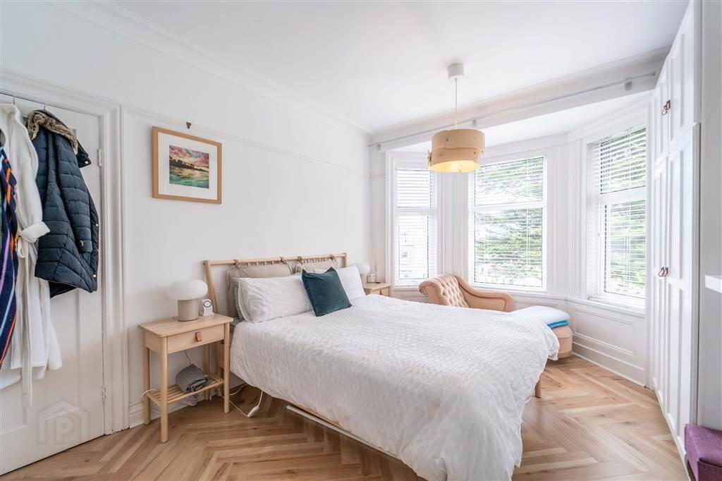 Front aspect double Bedroom with a feature Bow Bay Window and Laminate Herringbone Flooring. Stunning views over Ward Park.