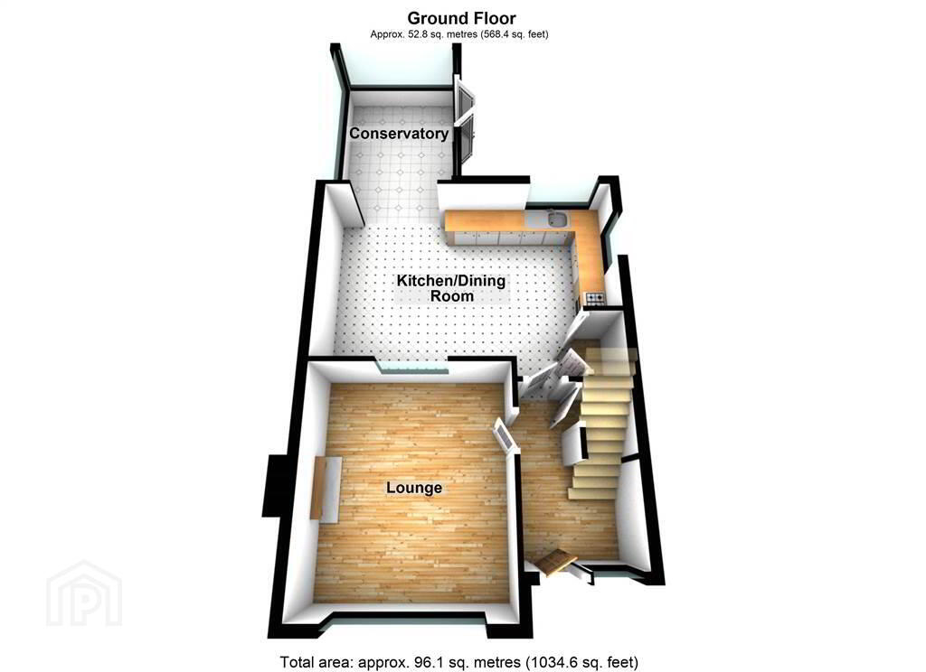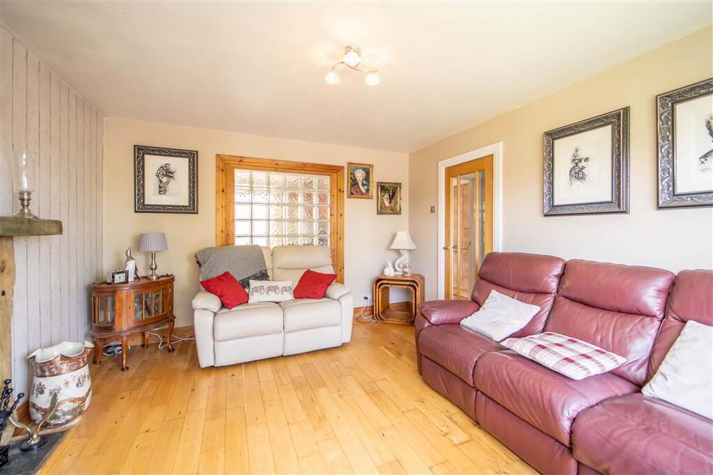Accommodation on the Ground Floor of the Property comprises a spacious Lounge with a feature Fireplace and a contemporary styled fitted Kitchen, with ample space for dining, which in turn leads through open plan to the Conservatory.