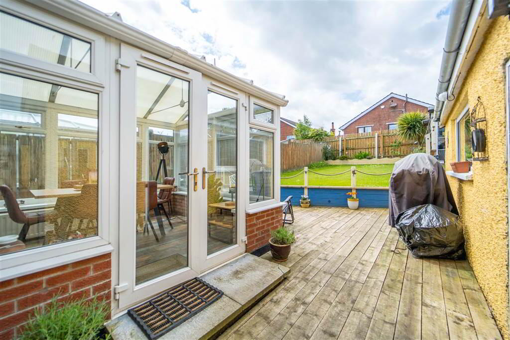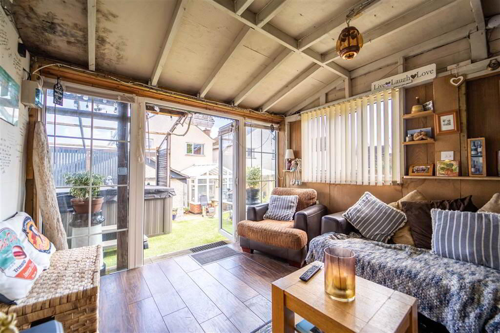 To the rear of the Property there is a fence enclosed garden offering multiple areas, with an aspect makes the most of the sun, to relax or entertain. The garden is primarily laid in lawn. Additionally, there is a Detached Garage which has been plumbed for Utilities, a Timber Decking Area (currently utilised as a Hot Tub Area) and a Timber Summer House which has been fitted with power.