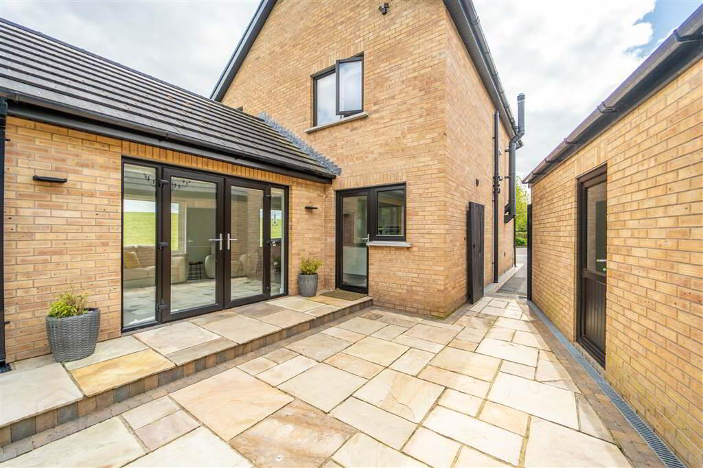 there is an enclosed Garden / Entertainment Area with designer Lighting, Indian Sandstone Paving to Patio Areas and Artificial Grass for minimum maintenance.