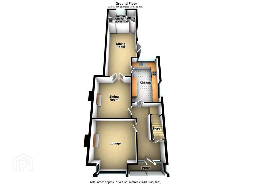 The Ground Floor of the Property comprises of three individual Reception Spaces, a fitted Kitchen and a Ground Floor Shower Room. Both the Lounge & Sitting Room benefit from a Cast Iron Stove & Gas Fire respectively with the Dining Room enjoying double doors leading to the Rear Garden.