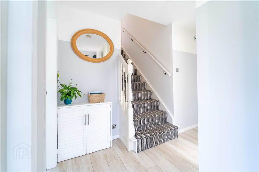 PVC Door leading into the Entrance Hall complete with Laminate Wooden Flooring. Access to Utility Cupboard.