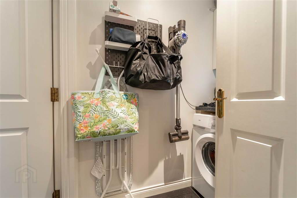 Located off the Kitchen fitted with a work surface with storage above and plumbed for utilities. Tiled floor continued from the Kitchen.