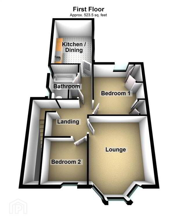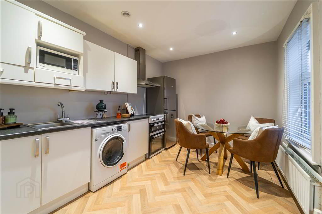 Spacious front aspect Reception Room leading into a Bay Window with elevated views over the Ballyholme Village Centre. - KITCHEN / DINING: